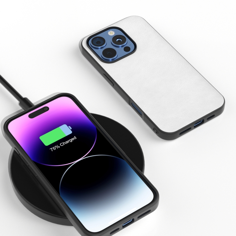 Funda de Teléfono PU con Textura Lichi Dos Colores para iPhone 16 Pro Max (Blanca)