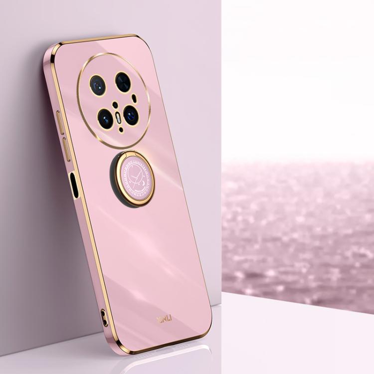 Funda TPU Xinli Borde Recto Galvanizada 6D para Huawei Mate 70 Pro/70 Pro+ con Soporte para Anillo (Morado Cereza)