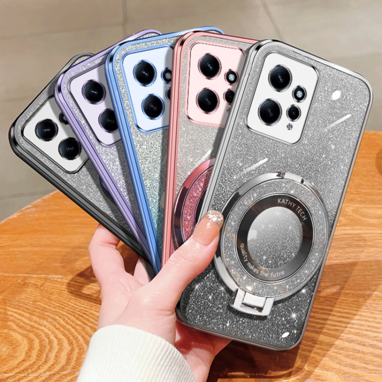 Funda de Teléfono de TPU con Soporte Redondo y Purpurina Degradada Chapada Global para Redmi Note 12 4G (Azul Sierra)