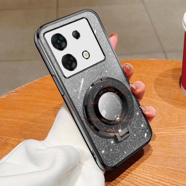 Funda TPU con Soporte Redondo y Purpurina Degradada para Infinix Zero 30 5G (Negra)