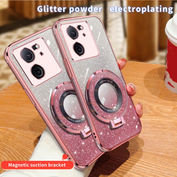 Funda de Teléfono de TPU con Soporte Redondo y Purpurina Degradada Chapada para Redmi K60 Ultra (Negra)