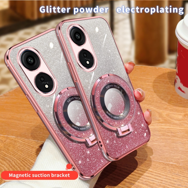 Funda de Teléfono de TPU con Soporte Redondo y Purpurina Degradada para Oppo A1 Pro/Reno8 T 5G (Rosa)