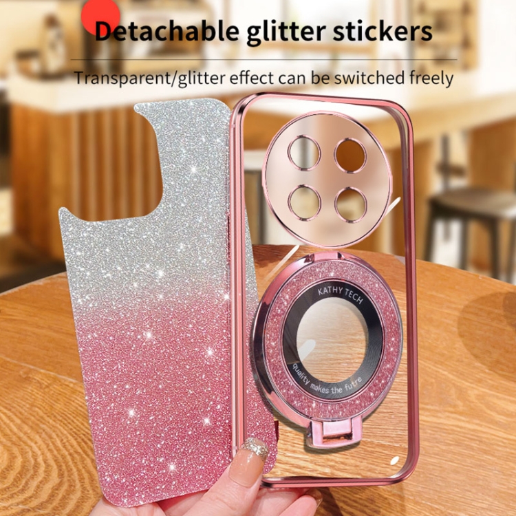 Funda de Teléfono de TPU con Soporte Redondo y Purpurina Degradada para Oppo A2 Pro (Azul Sierra)
