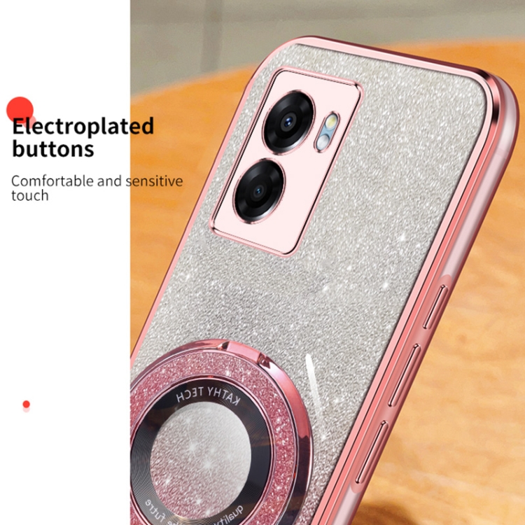 Funda de Teléfono de TPU con Soporte Redondo y Purpurina Degradada para Oppo A57 5G (Azul Sierra)