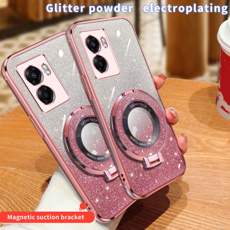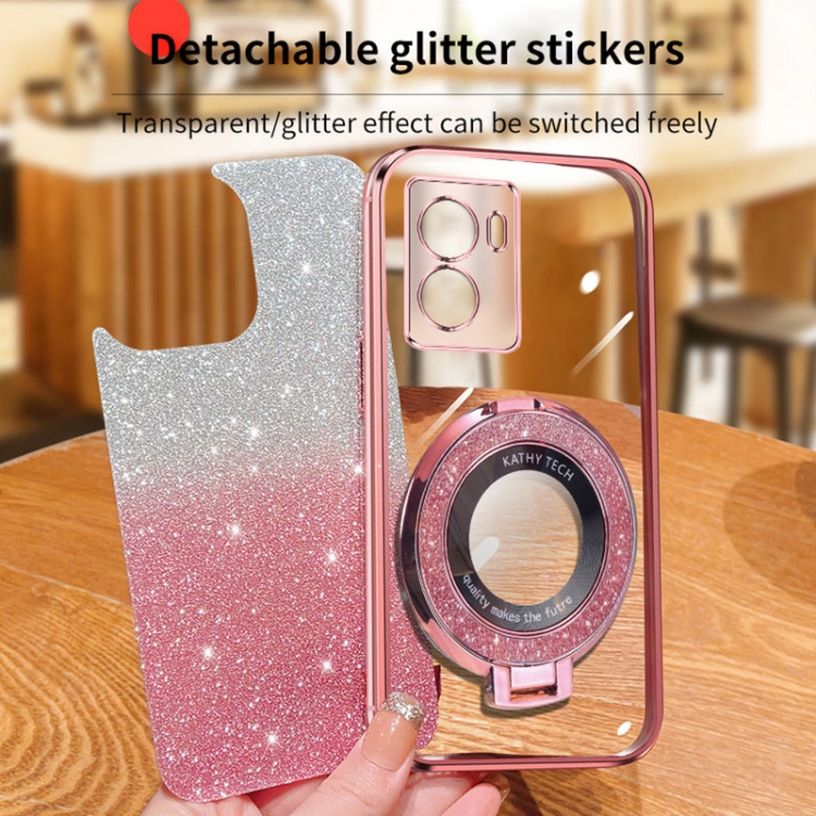 Funda de Teléfono de TPU con Soporte Redondo y Purpurina Degradada para Oppo A57 5G (Rosa)