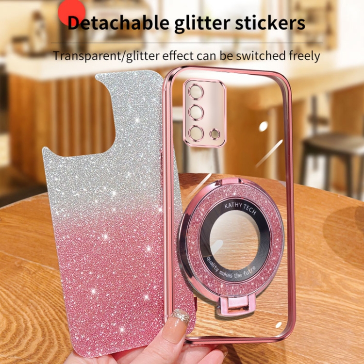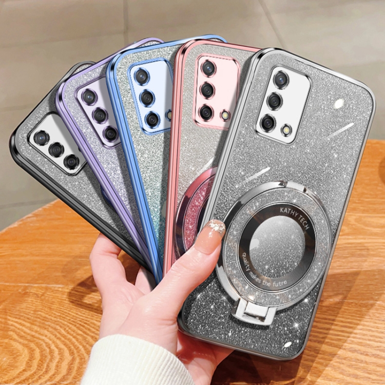 Funda de Teléfono de TPU con Soporte Redondo y Purpurina Degradada para Oppo A74 4G (Morado)
