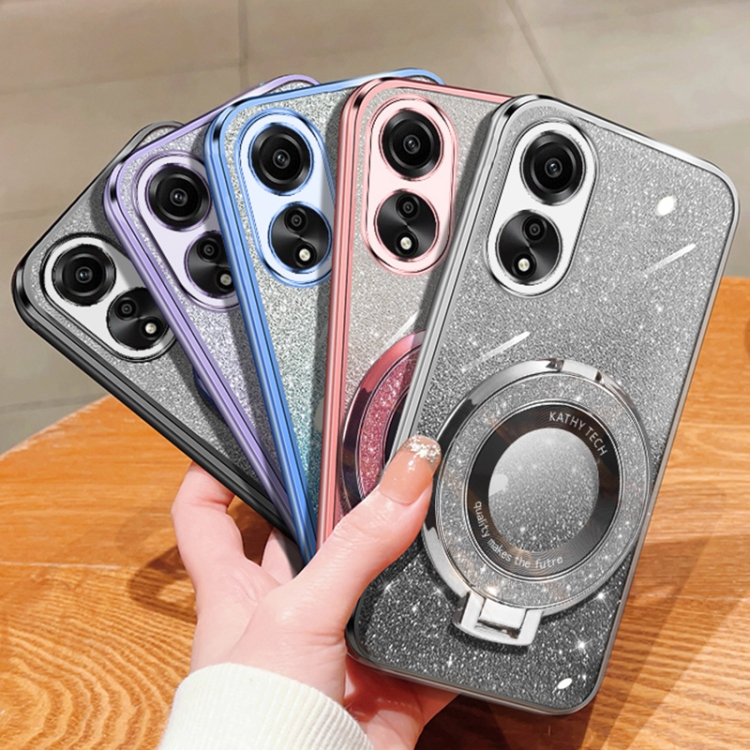 Funda de Teléfono de TPU con Soporte Redondo y Purpurina Degradada para Oppo A78 4G (Rosa)