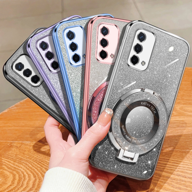 Funda de Teléfono de TPU con Soporte Redondo y Purpurina Degradada para Oppo A93 5G (Negra)