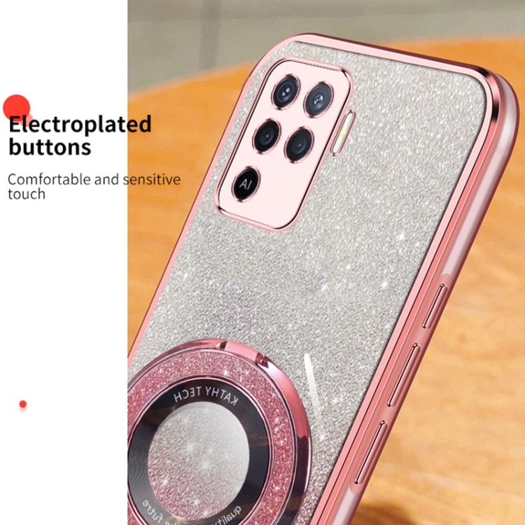 Funda de Teléfono de TPU con Soporte Redondo y Purpurina Degradada para Oppo A94 4G/Reno5 F (Azul Sierra)