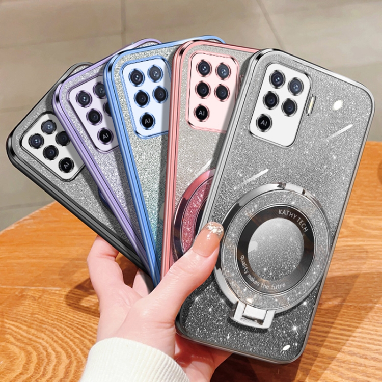 Funda de Teléfono de TPU con Soporte Redondo y Purpurina Degradada para Oppo A94 4G/Reno5 F (Rosa)
