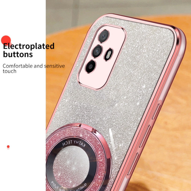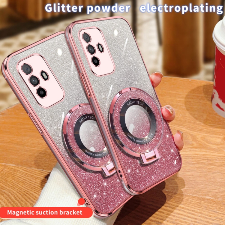 Funda de Teléfono de TPU con Soporte Redondo y Purpurina Degradada para Oppo A95 4G (Rosa)