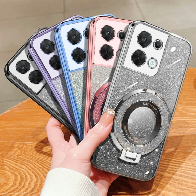 Funda de Teléfono de TPU con Soporte Redondo y Purpurina Degradada para Oppo Reno8 (Negra)