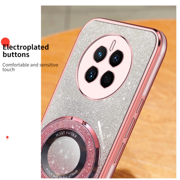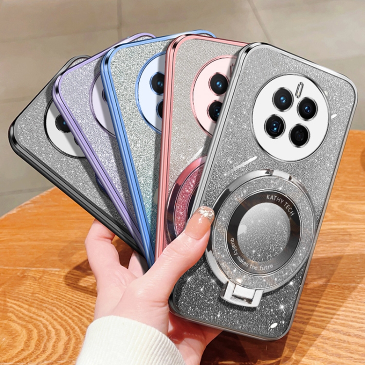 - 1x Funda de TPU con Soporte Redondo y Purpurina Degradada para Huawei Mate 50/Mate 50E (Plateada)