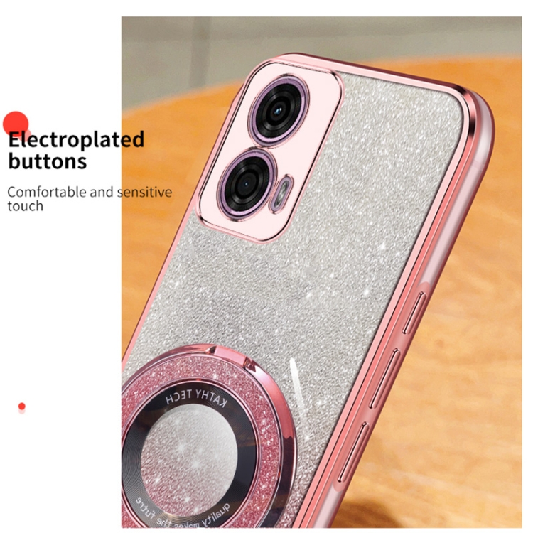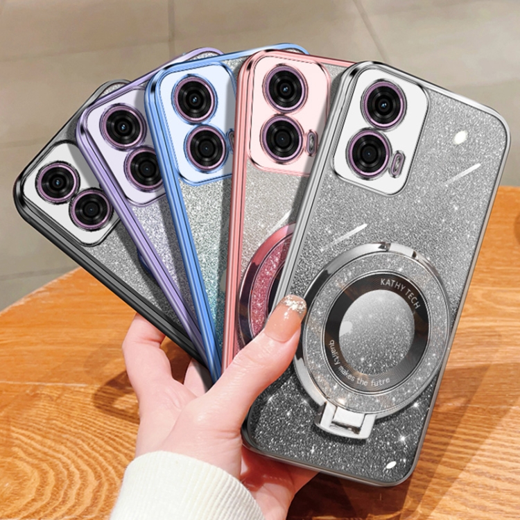Funda de Teléfono TPU con Soporte Redondo y Purpurina Degradada para Motorola Moto G24 (Plateada)