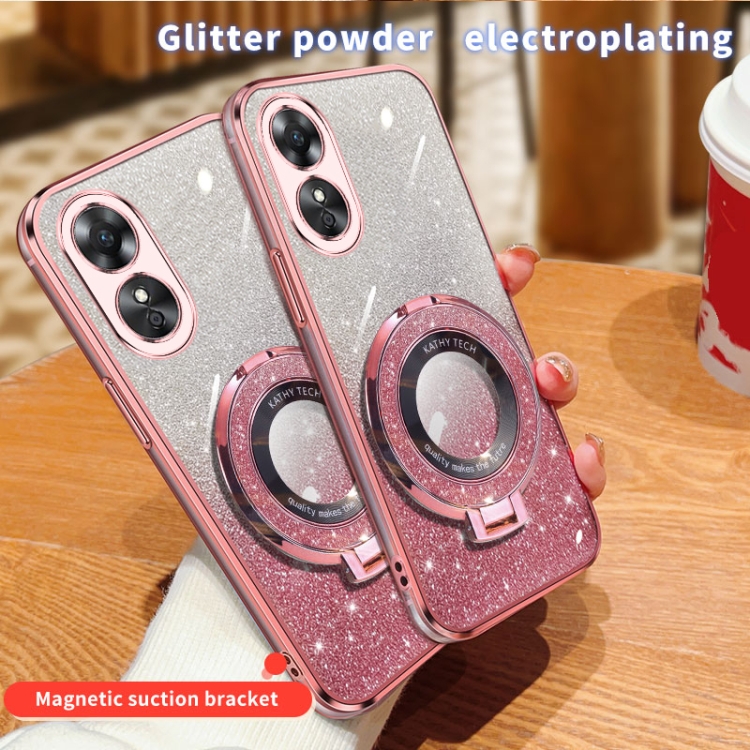 Funda de Teléfono de TPU con Soporte Redondo y Purpurina Degradada Plateada para Oppo A17 (Plateada)