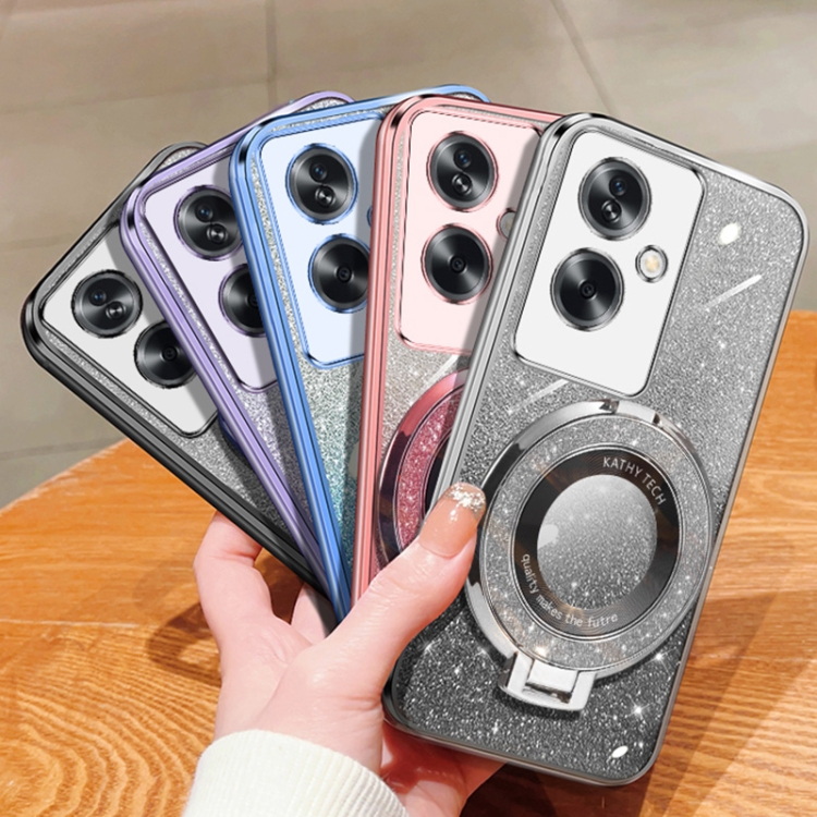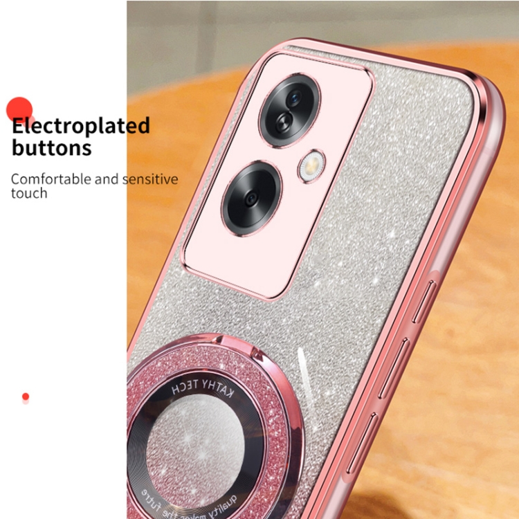 Funda de Teléfono de TPU con Soporte Redondo y Purpurina Degradada Plateada para Oppo A2 5G/A79 (Plateada)