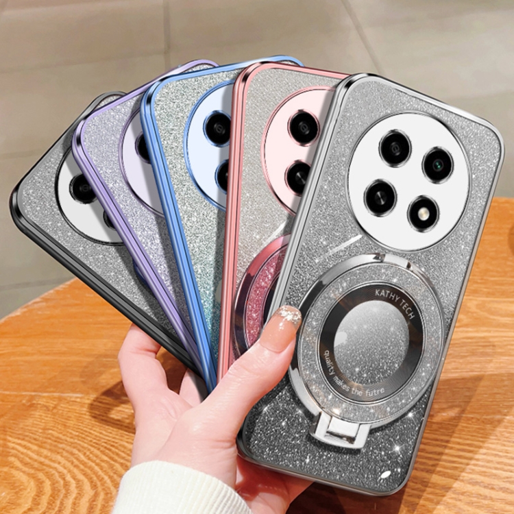 Funda de Teléfono de TPU con Soporte Redondo y Purpurina Degradada Plateada para Oppo A2 Pro (Plateada)