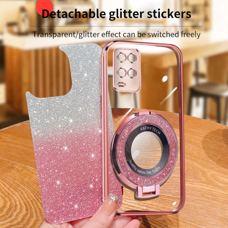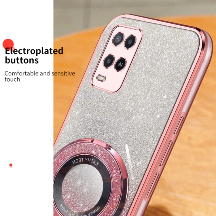 Funda de Teléfono de TPU con Soporte Redondo y Purpurina Degradada Plateada para Oppo A54 (Negro)