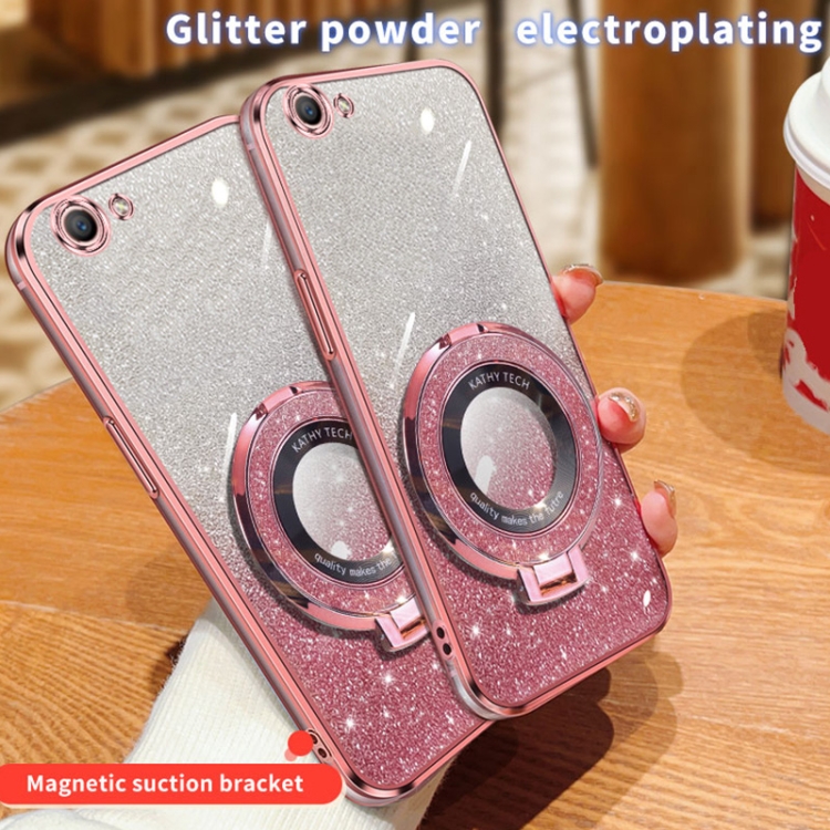 Funda de Teléfono de TPU con Soporte Redondo y Purpurina Degradada Plateada para Oppo A59 (Plateada)