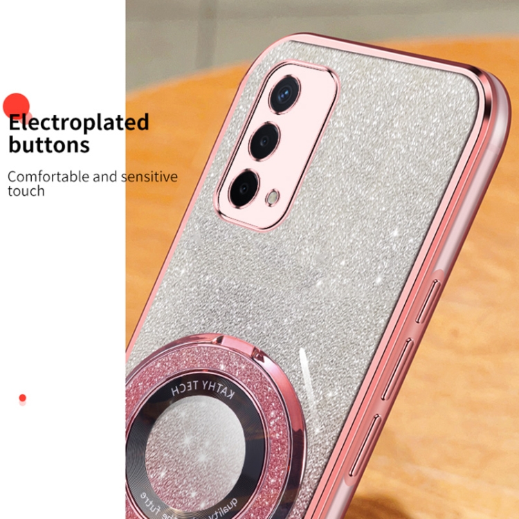 Funda de Teléfono de TPU con Soporte Redondo y Purpurina Degradada Plateada para Oppo A93 5G (Plateada)