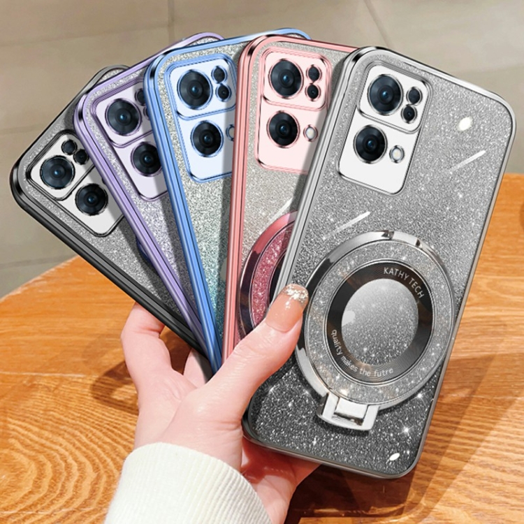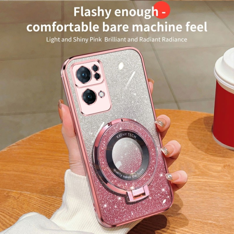 Funda de Teléfono de TPU con Soporte Redondo y Purpurina Degradada Plateada para Oppo Reno7 Pro 5G (Plateada)