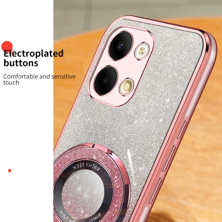 Funda de Teléfono de TPU con Soporte Redondo y Purpurina Degradada Plateada para Oppo Reno9 (Negra)