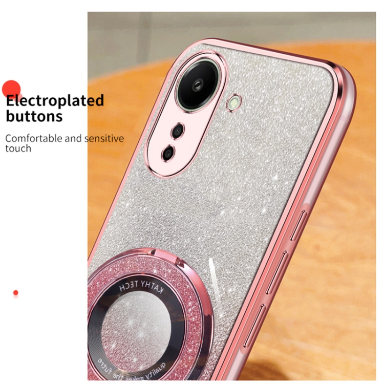 Funda de Teléfono de TPU con Soporte Redondo y Purpurina Degradada Plateada para Redmi 13C 4G (Morado)