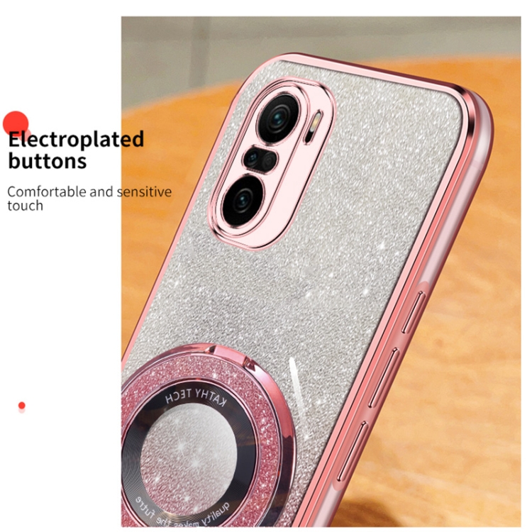 Funda de Teléfono de TPU con Soporte Redondo y Purpurina Degradada Plateada para Redmi K40/K40 Pro (Rosa)