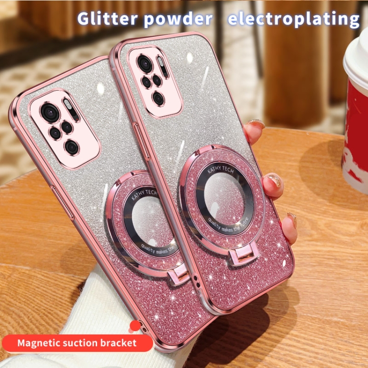 Funda de Teléfono de TPU con Soporte Redondo y Purpurina Degradada Plateada para Redmi Note 10 4G (Plateada)