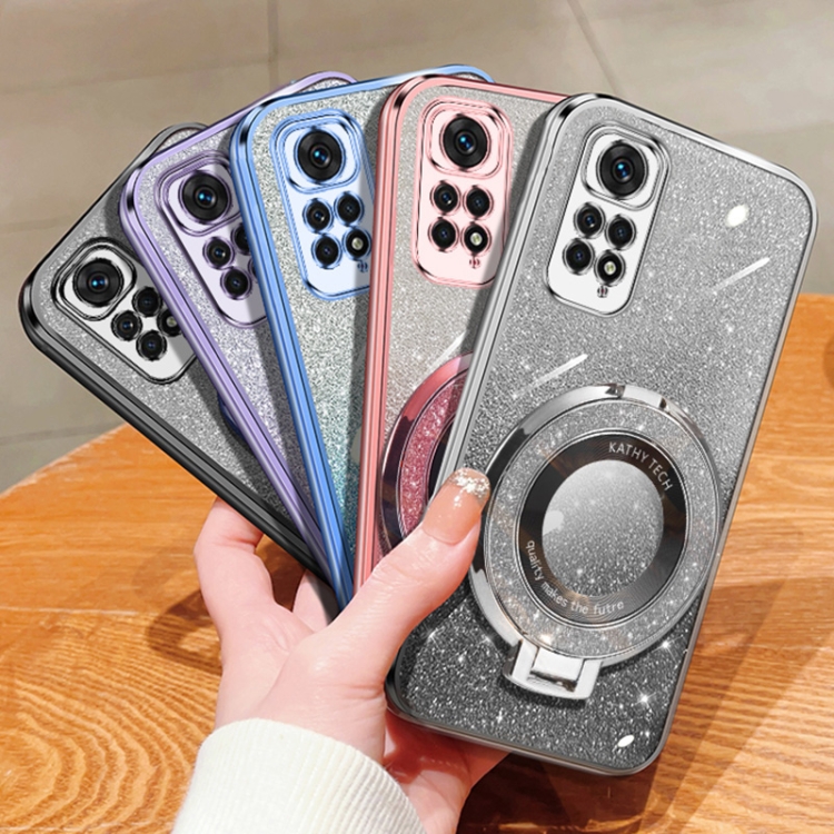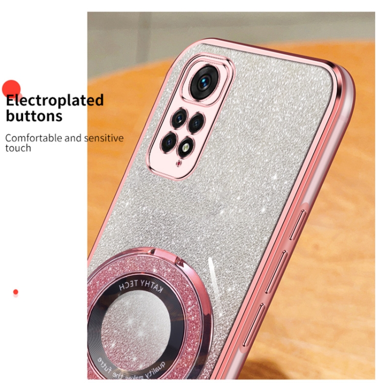 Funda de Teléfono de TPU con Soporte Redondo y Purpurina Degradada Plateada para Redmi Note 11S (Rosa)