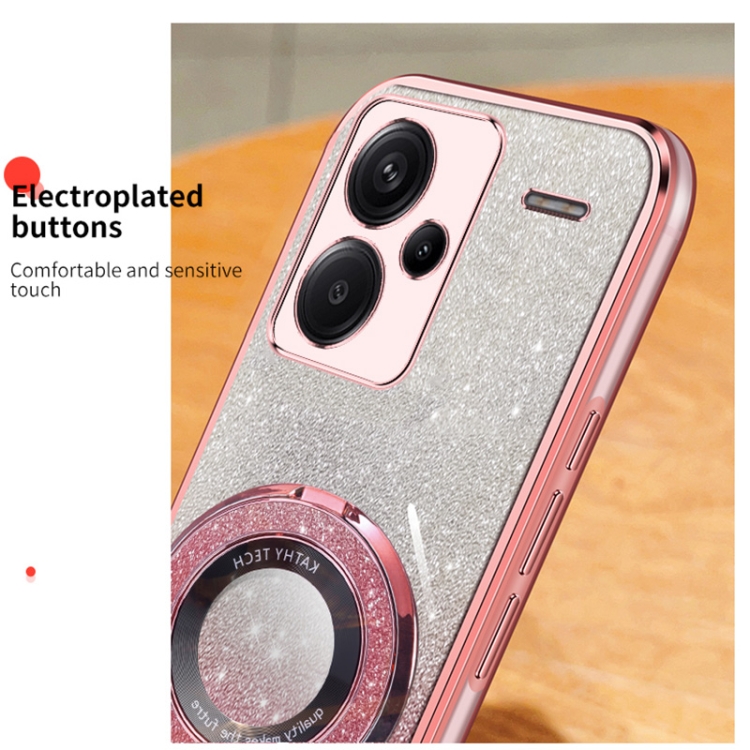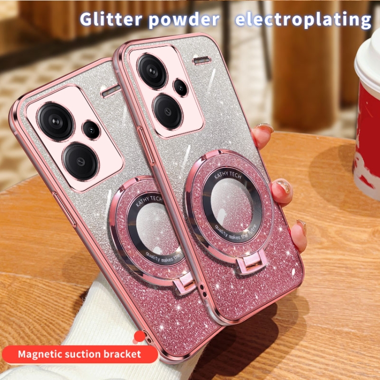 Funda de Teléfono de TPU con Soporte Redondo y Purpurina Degradada Plateada para Redmi Note 13 Pro+ (Plateada)