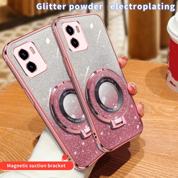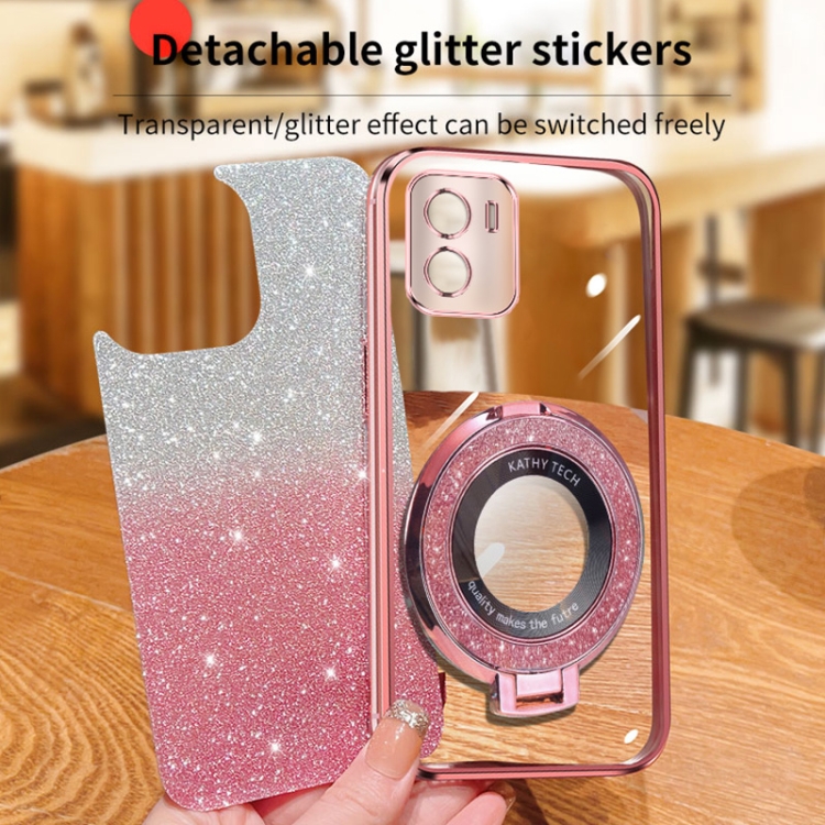 Funda de Teléfono de TPU con Soporte Redondo y Purpurina Degradada Plateada para Vivo Y10/Y15S 2021 (Plateada)