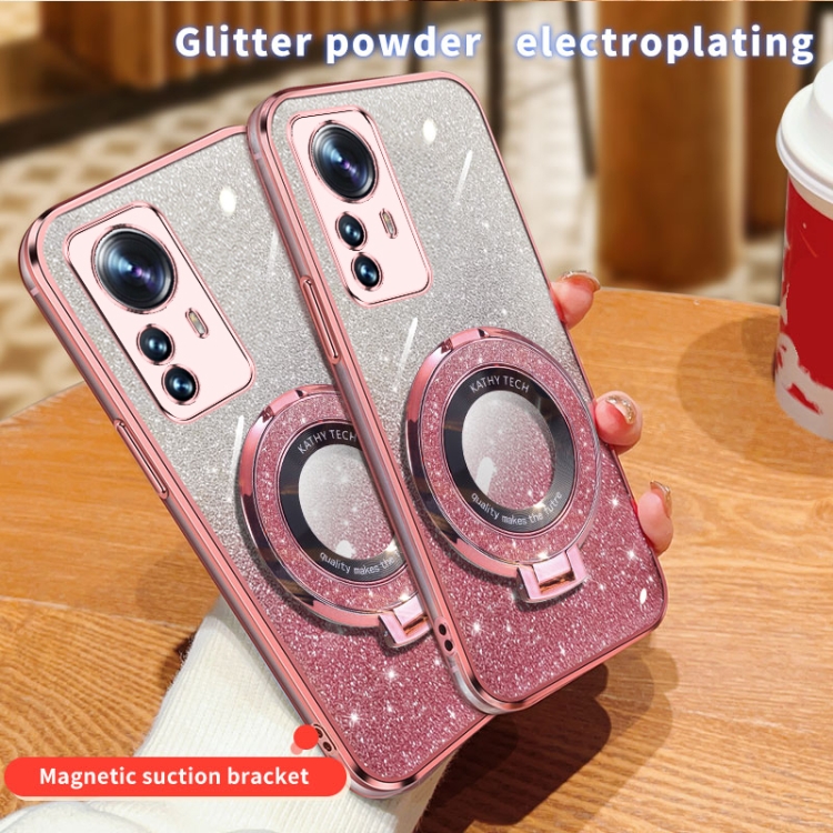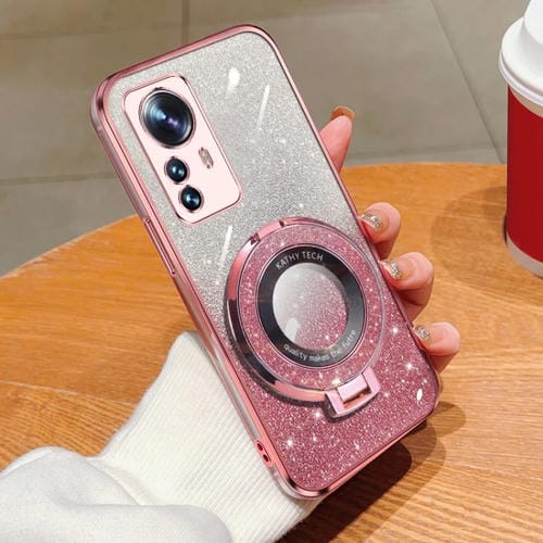 Funda de Teléfono de TPU con Soporte Redondo y Purpurina Degradada Plateada para Xiaomi 12 Pro/12S Pro (Rosa)