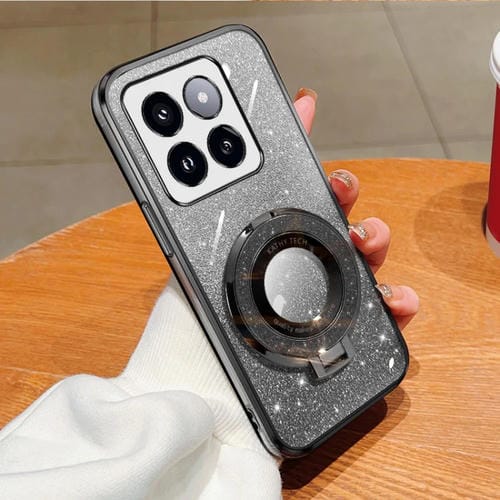 Funda De Teléfono De Tpu Con Soporte Redondo Y Purpurina Degradada Plateada Para Xiaomi 14 Pro (Negra)