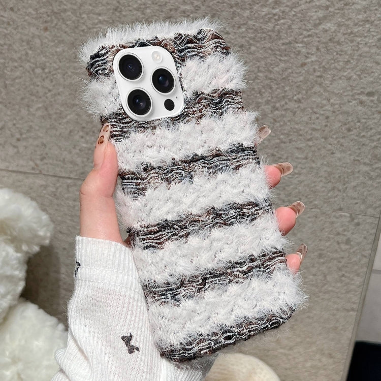 Funda de Teléfono TPU con Tejido a Rayas de Felpa para iPhone 16 Pro Max (Negra)