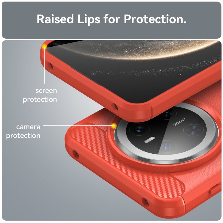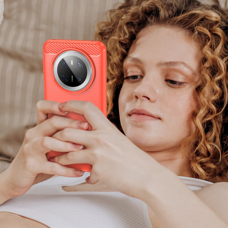 Funda de TPU Huawei Mate 70 Textura Cepillada Fibra de Carbono (Roja)