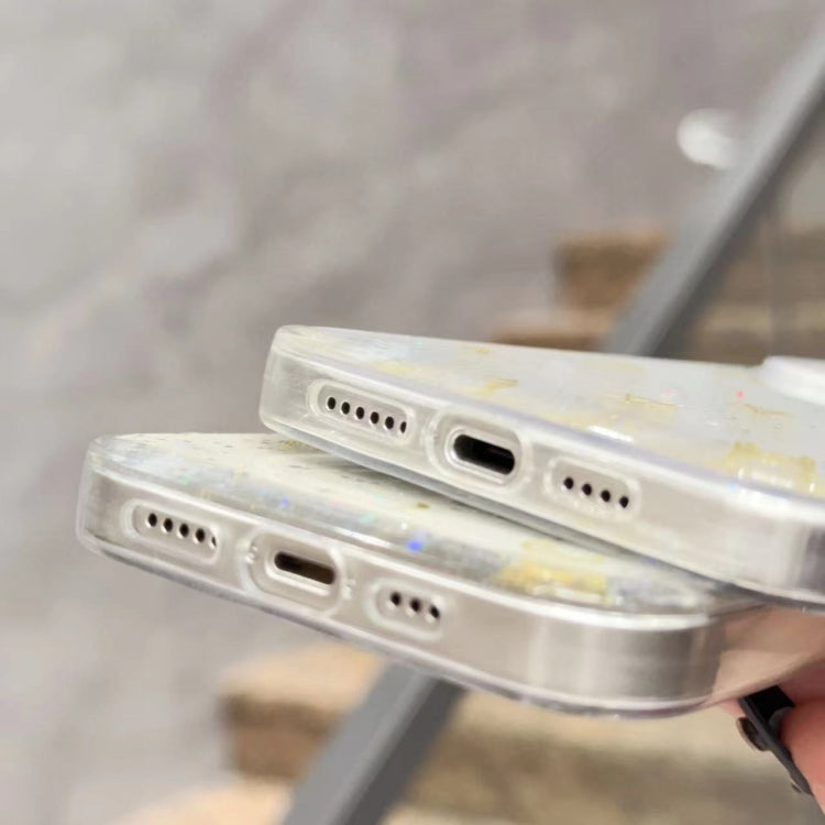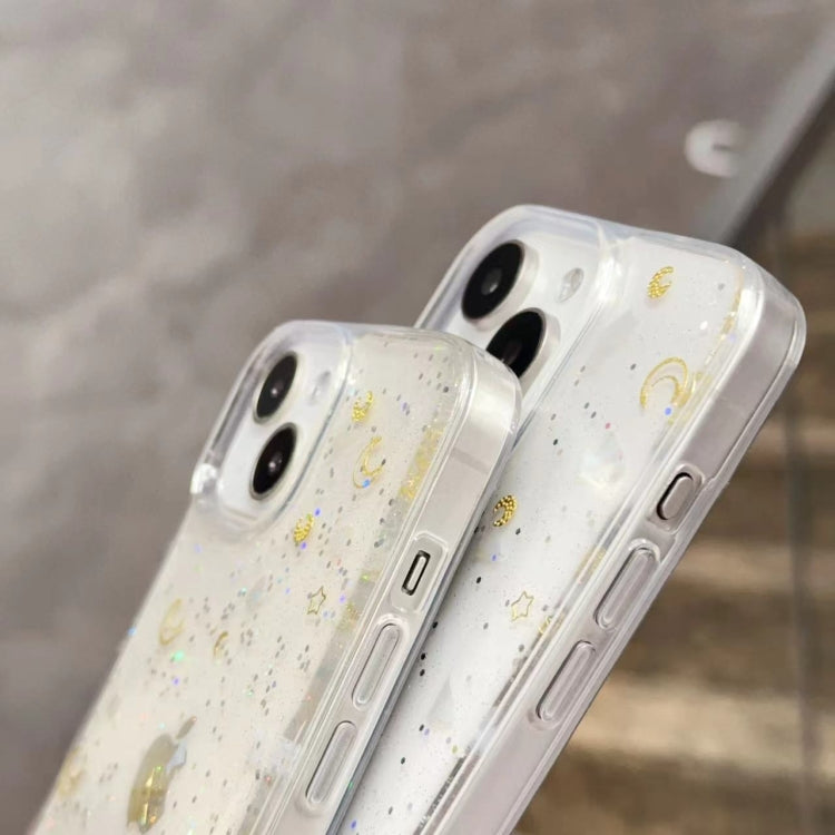 Funda de Teléfono TPU Epoxi con Purpurina y Diseño Luna y Estrellas para iPhone 16 Pro (Transparente)