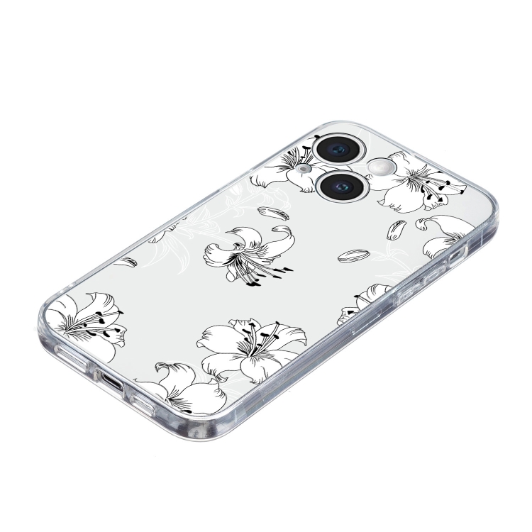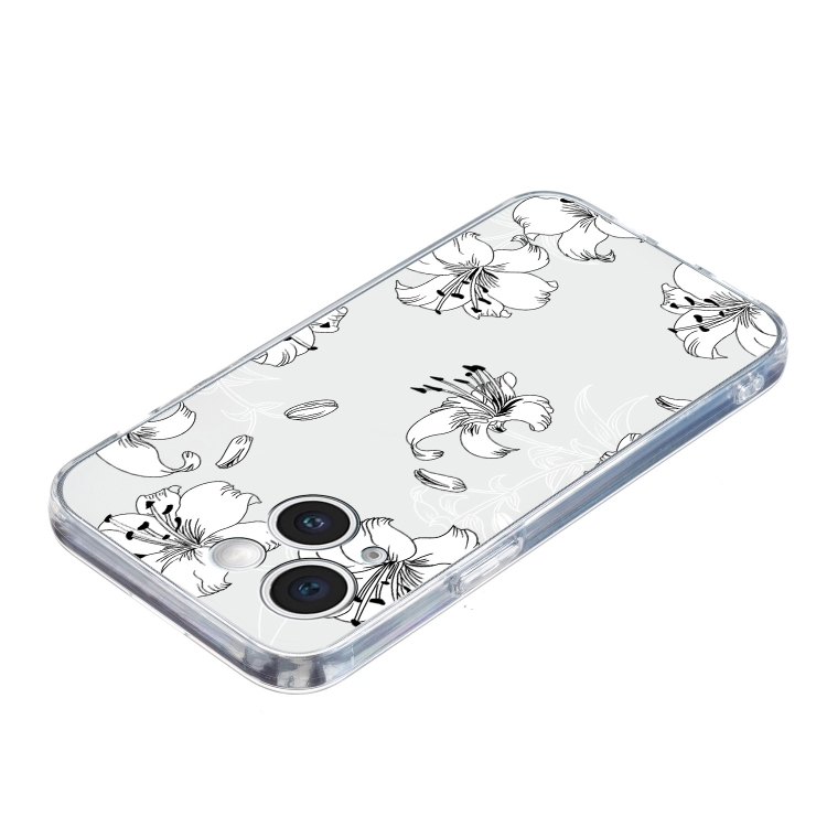 Funda de Teléfono TPU iPhone 14 Patrón Dibujo Colores (Flor Blanca)