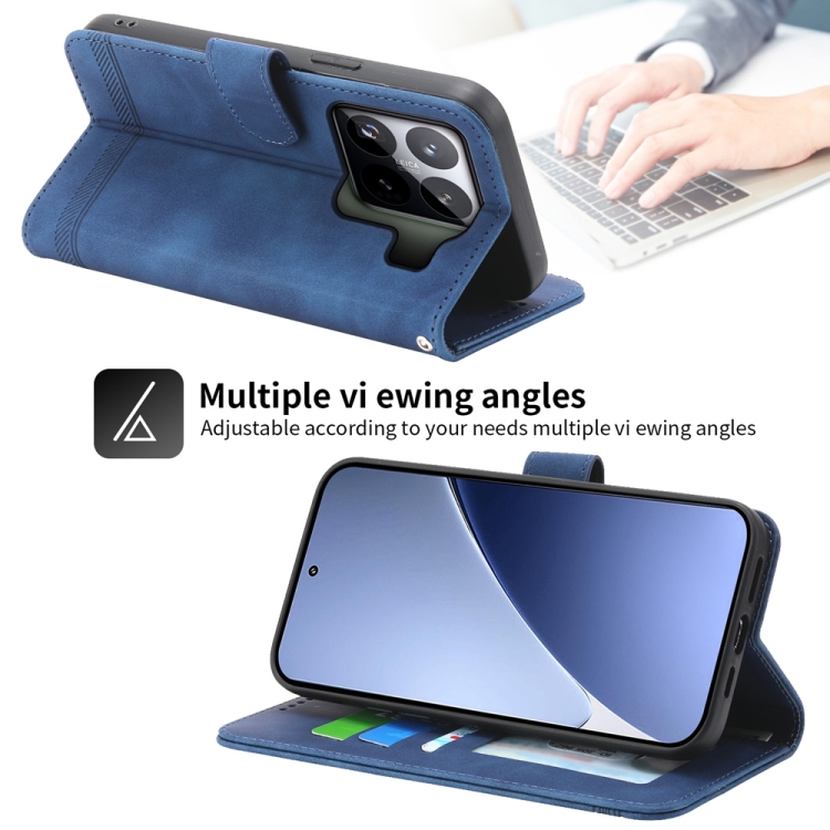 Funda De Teléfono Híbrida De Cuero Pu Y Tpu Dierfeng Dream Line Para Xiaomi 15 Pro (Azul)