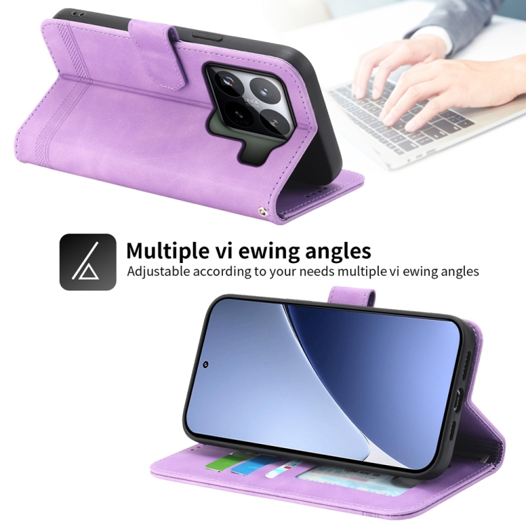 Funda De Teléfono Híbrida De Cuero Pu Y Tpu Dierfeng Dream Line Para Xiaomi 15 Pro (Morado)