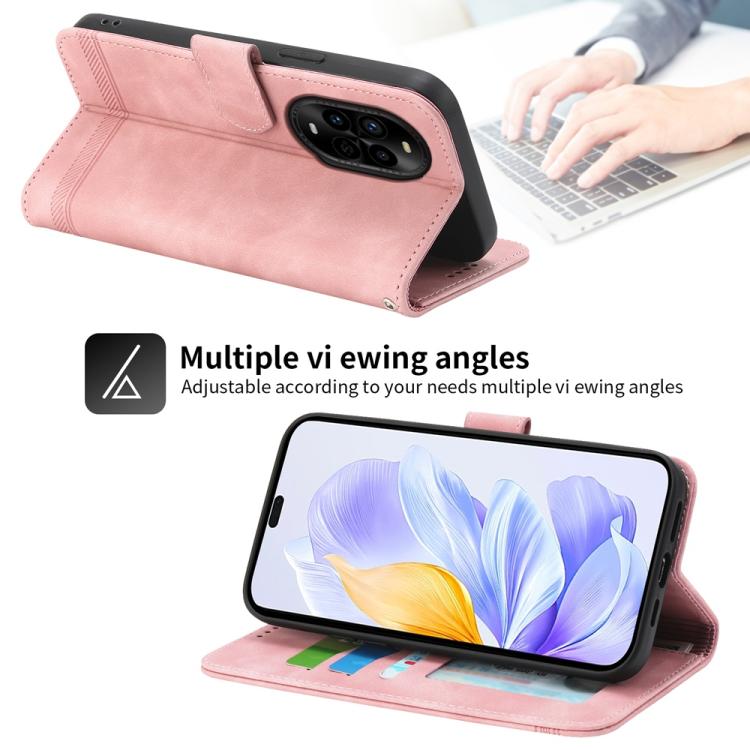 Funda híbrida de Cuero PU y TPU Dierfeng Dream Line para Huawei Nova 13 Pro (Rosa)