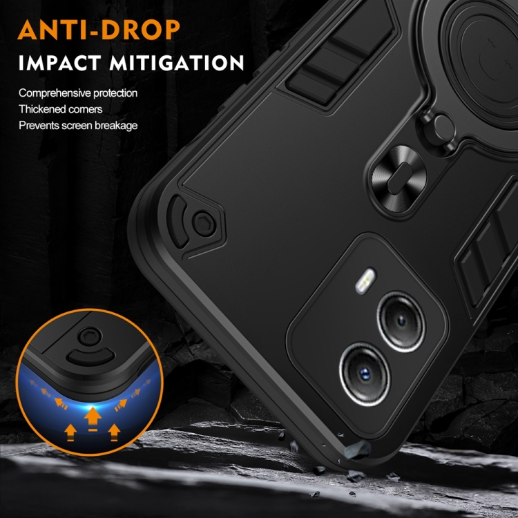 Funda híbrida TPU y PC con soporte giratorio 360° y anillo metal para Motorola Moto G53 5G (Negro)