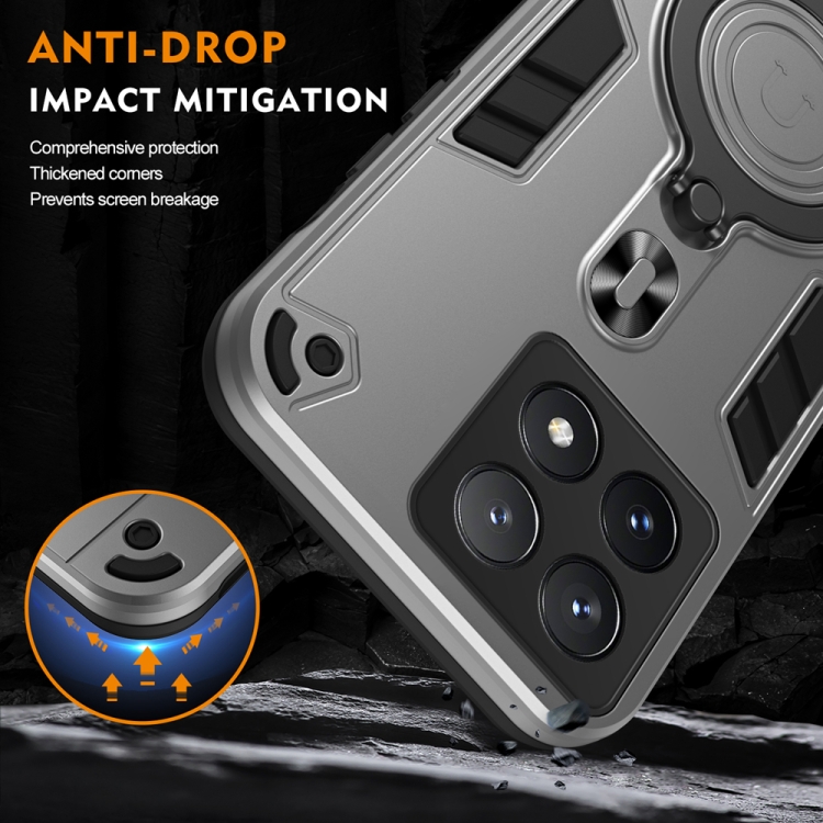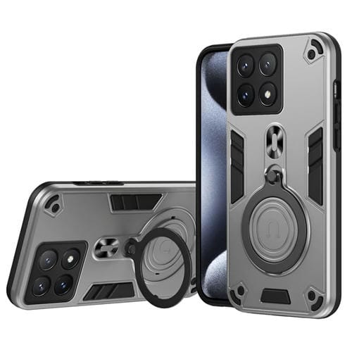 Funda de Teléfono Híbrida de TPU y PC con Soporte Giratorio de 360 Grados y Anillo de Metal para Xiaomi Poco X6 Pro 5G (Gris Plateado)