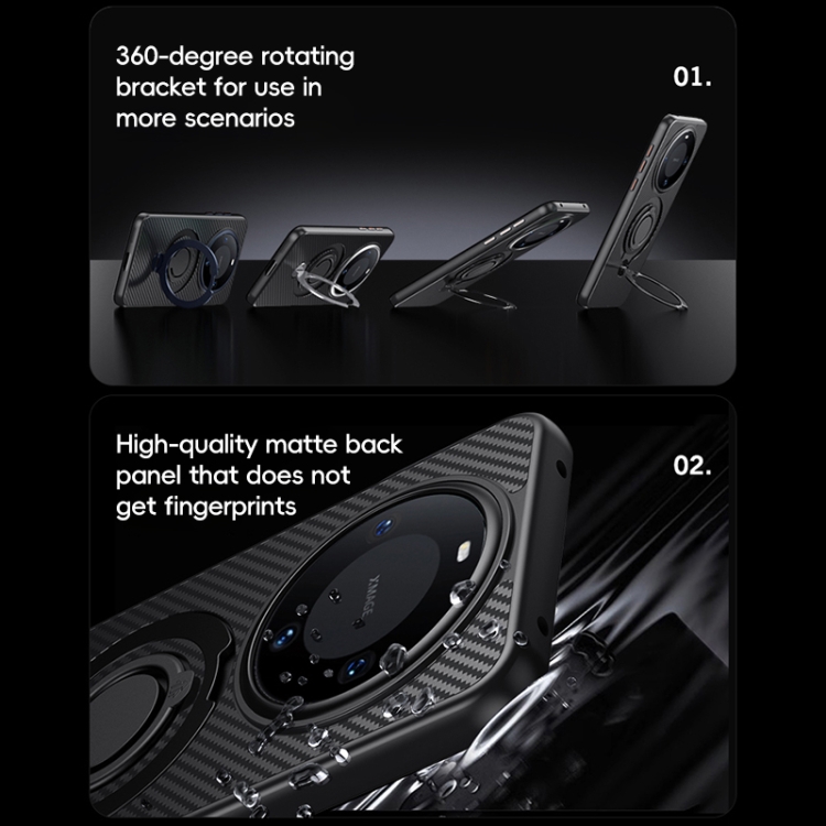 Funda Magsafe Fibra de Carbono con Soporte Giratorio 360° para Huawei Mate 60 Pro/60 Pro+ (Negra)