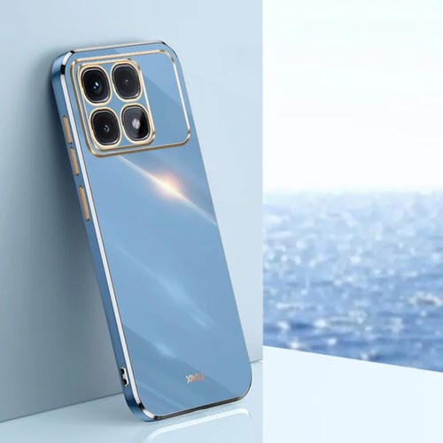 Funda de TPU con Borde Dorado y Revestimiento 6D Recto para Redmi K70 Ultra Xinli (Azul Celestial)