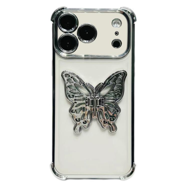 Funda de TPU con diseño de mariposa 3D electropolada para iPhone 17 Pro (plateada)