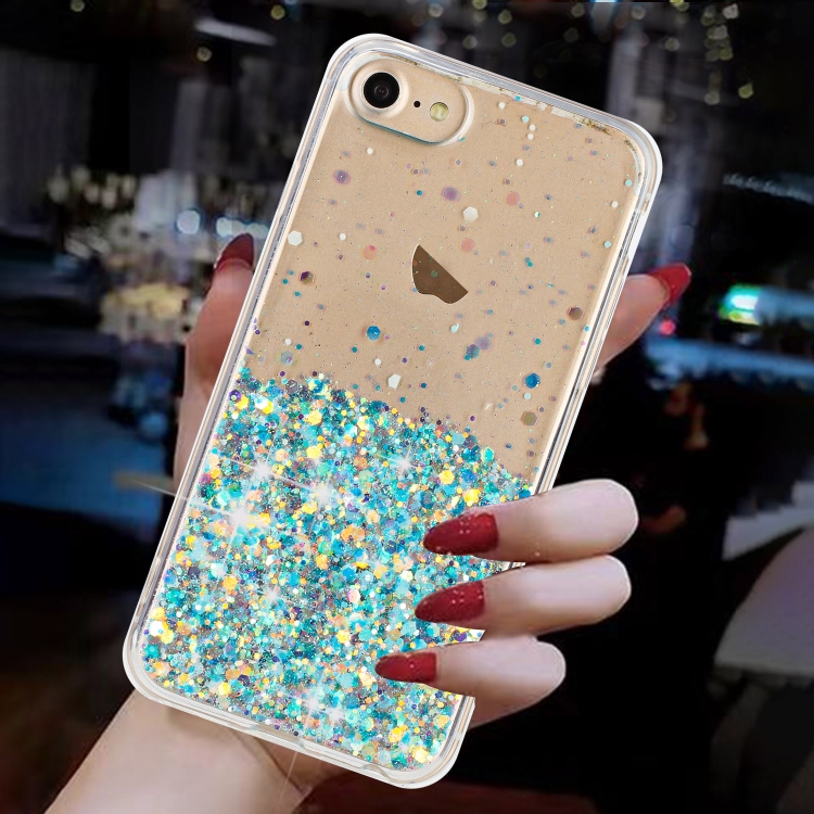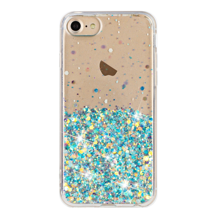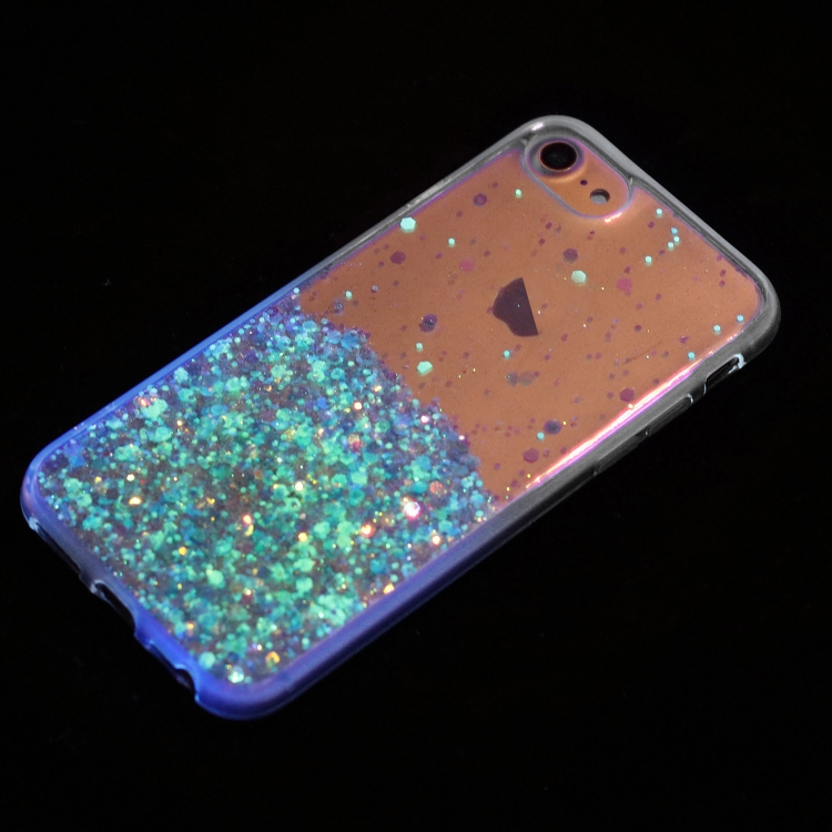 Funda TPU con Marco Transparente y Polvo Brillante Noctilucente para iPhone 8/7 (Azul)