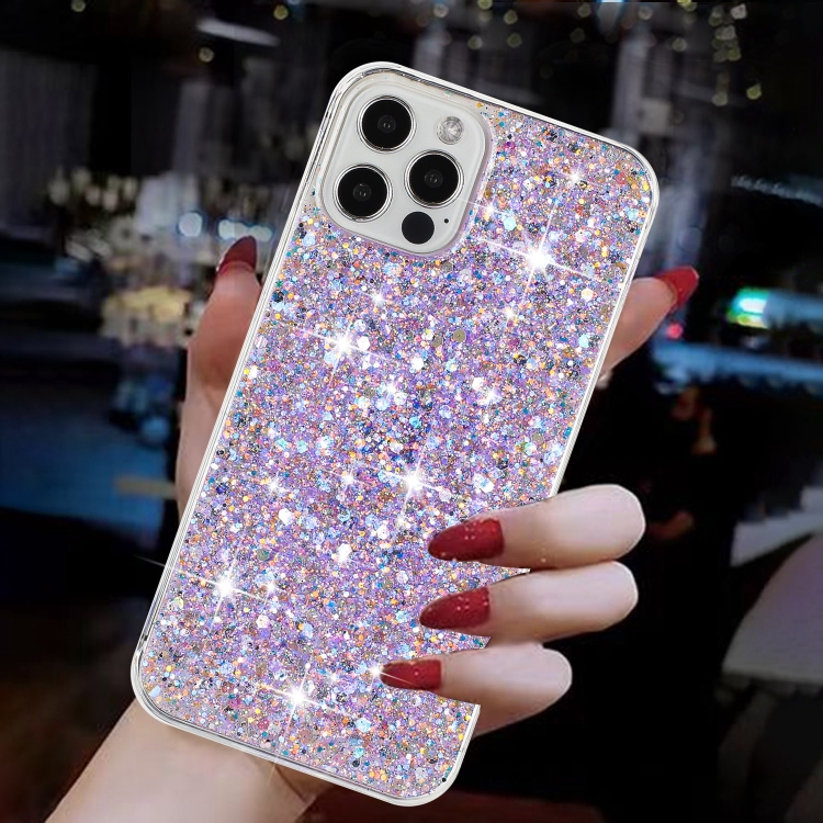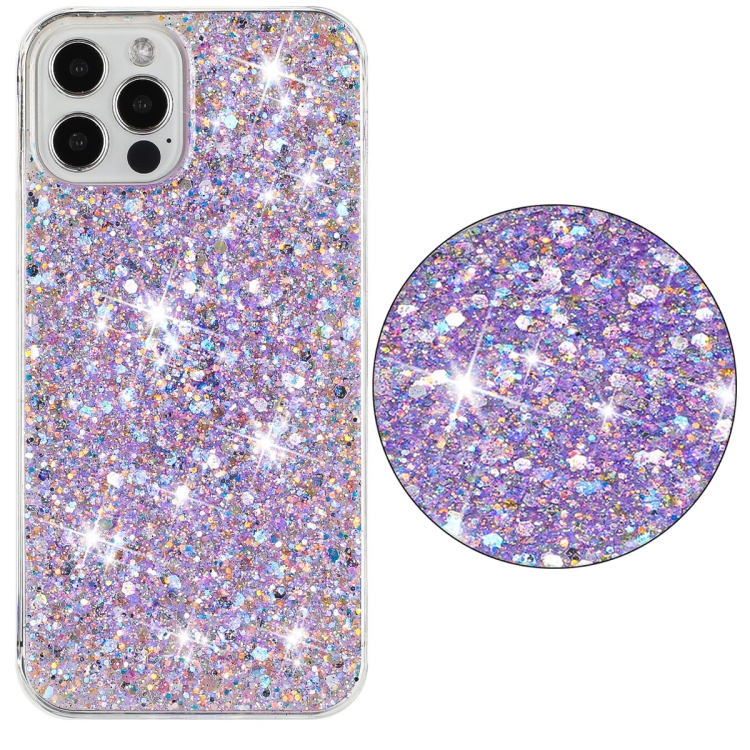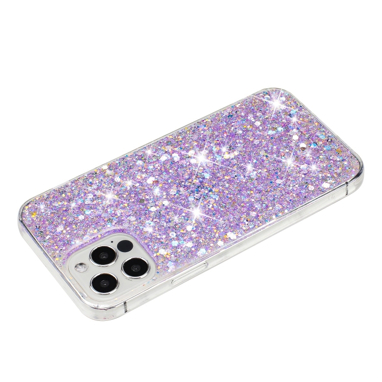 Funda TPU con Marco Transparente y Purpurina en Polvo para iPhone 12 Pro Max (Morado)