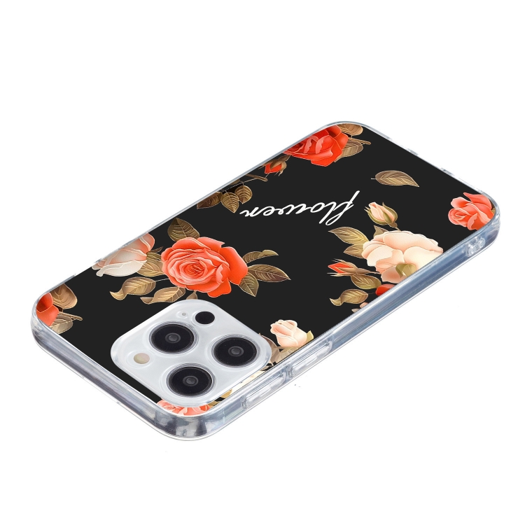Funda TPU iPhone 16 Pro Max Patrón Pintura Colorida (Flores) (Negro)