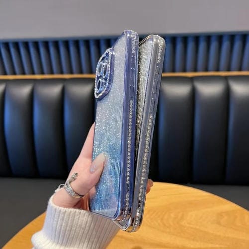 Funda de TPU con purpurina y degradado de agua con diamantes para iPhone 17 (azul)